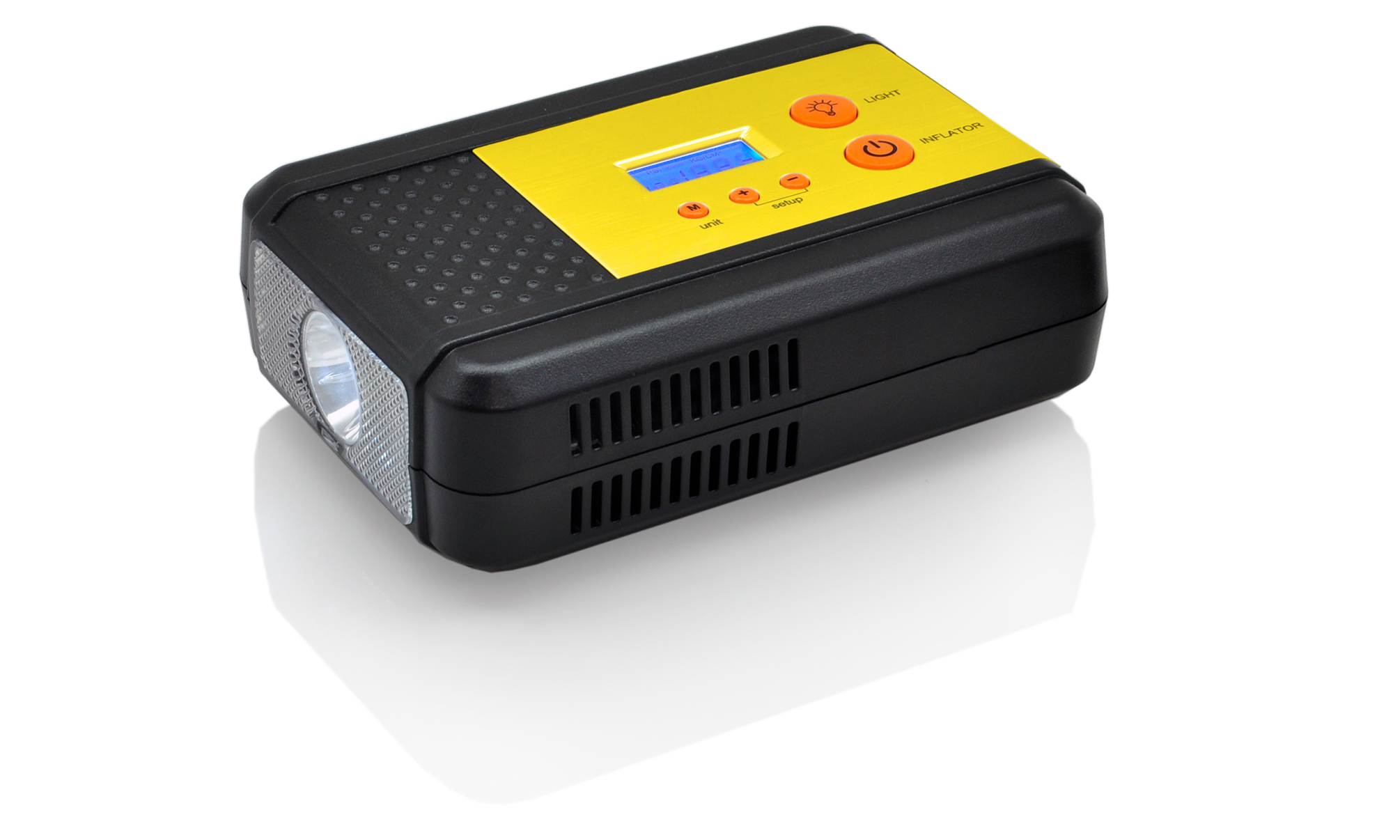 Навинчивающаяся насадка на ниппель колеса Подключение в гнездо прикуривателя Насадки-штуцеры для надувных изделий 4шт. Яркий светодиодный фонарь - 2 режима работы ЖК-дисплей Цифровой электронный манометр - 2 диапазона измерений |