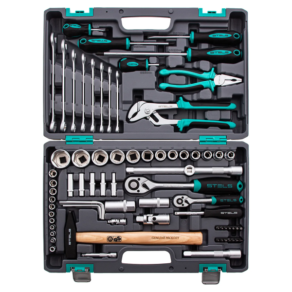 Набор инструментов, 1/2, 1/4, CrV, пластиковый кейс, 76 предметов Stels 14104